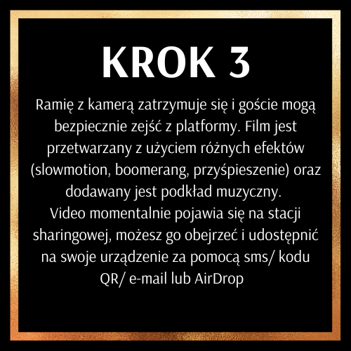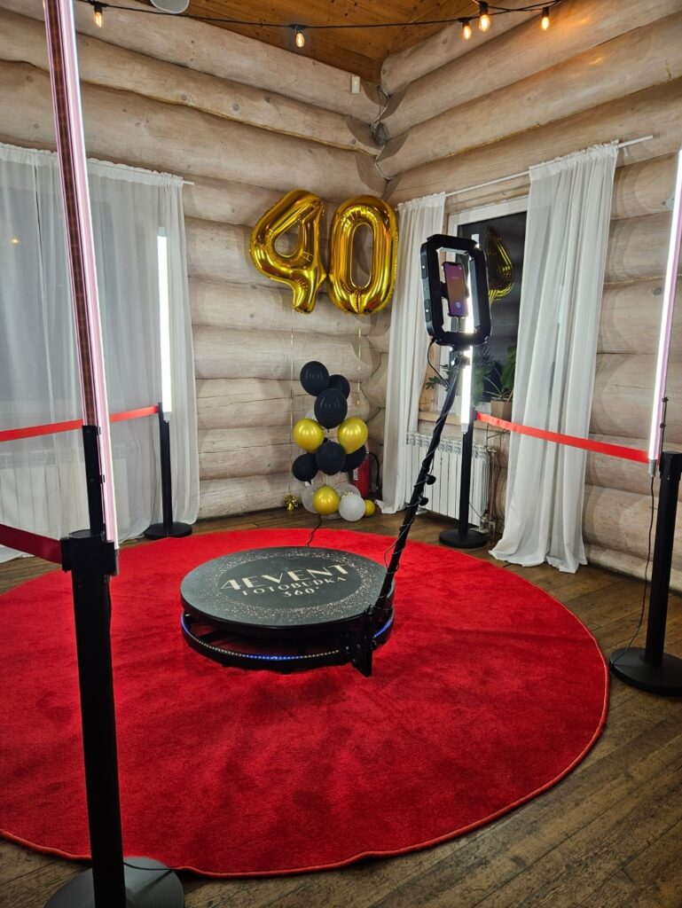 Fotobudka 360° to innowacyjna fotobudka, która nagrywa krótkie filmy. Składa się z platformy, na którą wchodzą uczestnicy wydarzenia oraz specjalnie zamontowanego ramienia połączonego z kamerą, które obraca się jednocześnie filmując bawiące się na niej osoby. Dzięki temu każdy uczestnik może nagrać jedyny w swoim rodzaju wirujący film z wykorzystaniem różnych gadżetów. Filmy są udostępniane zaraz po nagraniu za pomocą kodu QR, AirDrop’a, bądź linku wysyłanego na SMS lub e-mail.